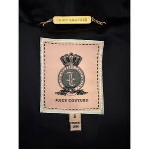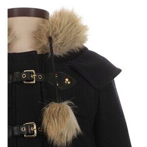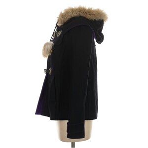 Vintage Juicy Couture Black Wool Blend Faux Fur Trim Hooded Toggle Coat