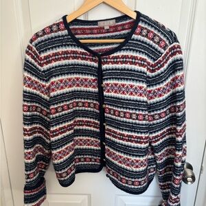 Stay cozy and stylish with this J. Crew women's sweater jacket. Featuring a vibrant multicolor fair isle pattern, it's perfect for any occasion. The soft fabric ensures comfort and warmth.