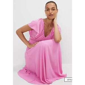 ANN TAYLOR 2025 Pink Orchid Flutter Sleeve Midi Flare Dress Balletcore