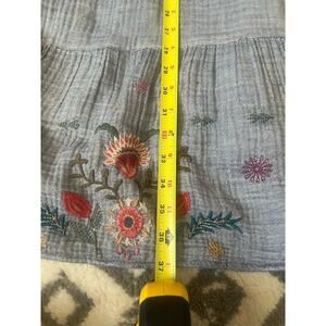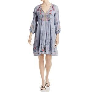JOHNNY WAS Lucy Chambray Cotton Gauze Embroidered Easy Tiered Dress Sz M RARE
