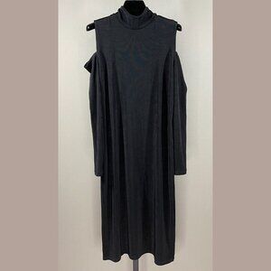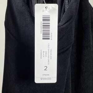 NEW Chicos Dress Womens Medium black sheath travelers open shoulder