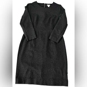 Chic minimalist charcoal gray dress by J. Crew features a long back zipper, crew neck, comfortable slightly stretchy fabric and long sleeves. Perfect for all occasions and can be worn casually or dressy.