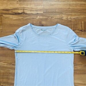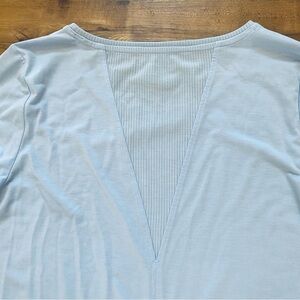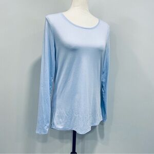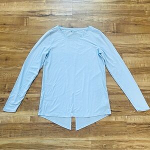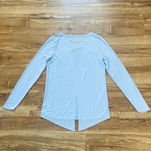 ATHLETA S Light Blue Essence Semi Fit Long Sleeve Split Back Activewear T-Shirt