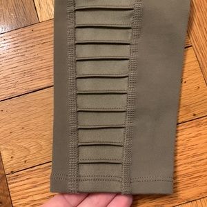 High-waisted olive green leggings. Features ribbed detailing. Perfect for yoga or casual wear.