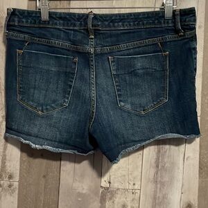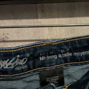 Mossimo Denim Women’ Mid Rise Midi Super Stretch Blue Cutoff Jean Shorts