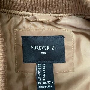 Forever 21 Brown Bomber Flight Jacket Multi Pocket Full Zip (Men’s Size Medium)