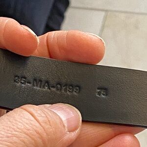 Enhance your wardrobe with this sophisticated black belt, featuring a luxurious pearl-accented gold buckle. A perfect accessory for any stylish ensemble.