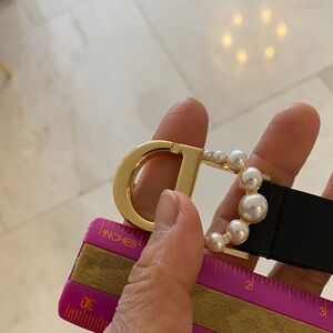 Christian Dior Black Belt with Pearl-Accented Gold Buckle 75