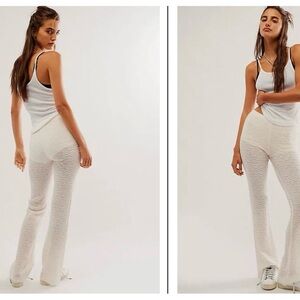 Free People Women’s Cream Floral Lace Cotton Flare Beach Pant SZ L
