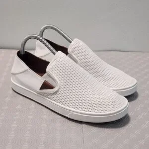 OLUKAI Pehuea Women's Size 9/EU 39 White Mesh Slip-On Drop Heel Comfort Shoes