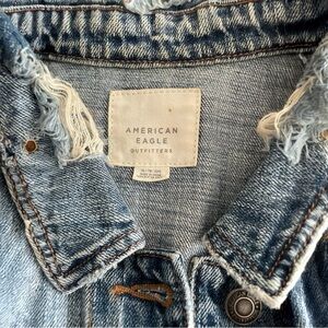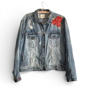 American Eagle Outfitters Distressed Jean Jacket with Floral Embroidery Size XL