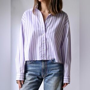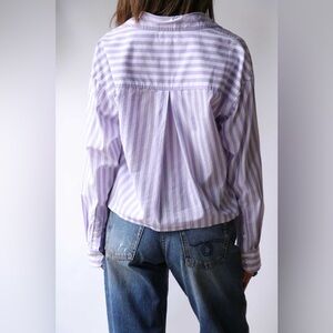 Xirena Morgan Amethyst Stripe Purple White Cotton Poplin Button Down Shirt EUC M