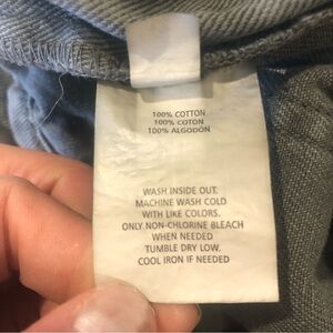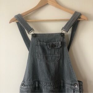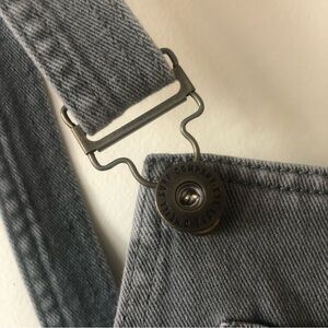 Gray denim overalls with 5 pocket styling. Raw gem and side button closures. Adjustable overall straps. These are a size 1 juniors which I would estimate would fit a women’s 24 or 25 jean size. Very good preowned condition.
