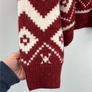 H&M red and white fair isle llama-patterned Ski sweater jacquard knit SZ M