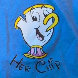 Set of coordinating mother-son Disney themed shirts. Features Mrs. Potts and Chip from Beauty & the Beast. Both tees are Bella + Canvas cotton-poly blend with permanent vinyl design. Machine wash gentle in cold water and line dry is recommended to extend the life of the design. Tees are like new! only worn once. Comes from a smoke free home.