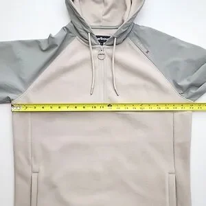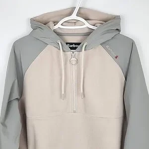 Barbour Men's Newfield Hybrid Fleece Hoodie Half Zip Pullover Grey Beige M