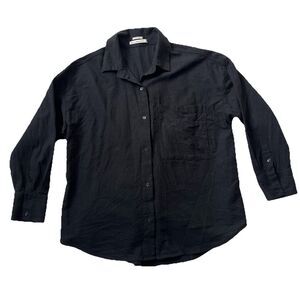 Abercrombie & Fitch Linen Blend Top Women Large Black Button Down Tunic Oversized