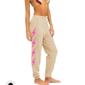 Aviator Nation BOLT 4 Sweatpants in Sand Beige and Neon Pink. New without tags