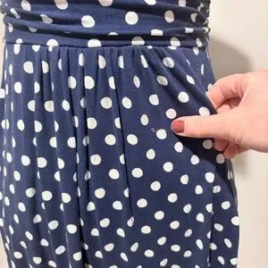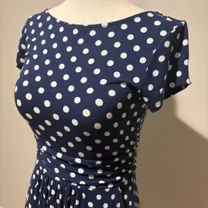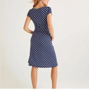 Boden Amelie Jersey Blue and White Polka Dot Dress