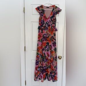 Aqua Floral Ruffle Maxi Dress