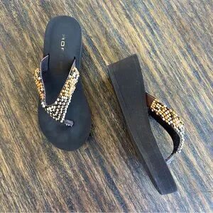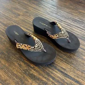 Roper VTG Y2K Brown Island Girl Tropical Orange Beaded Platform Sandals 5.5/6