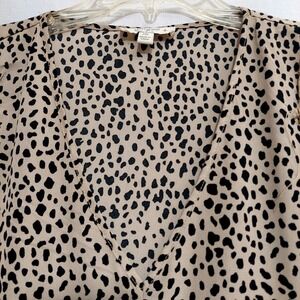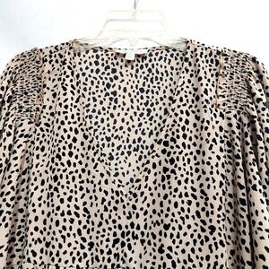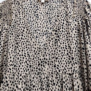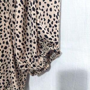 Umgee Womens 2XL Animal Print Babydoll Dress High Low Hem Balloon Sleeve Tan