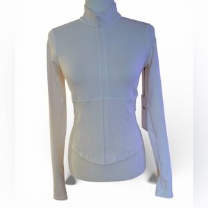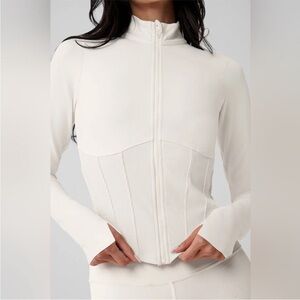 New**Alo Airbrush Corset Full Zip Jacket. Color: Ivory/Small. Small fits size 4-6. True to size. See last pic for details.