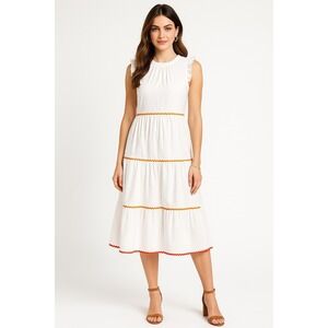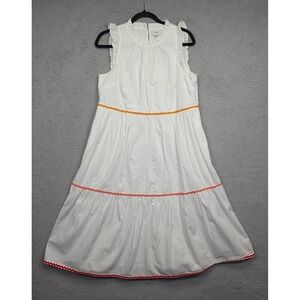J Crew Dress Womens 6 White Ruffle Prairie Cottagecore Tiered Boho Romantic