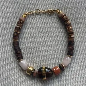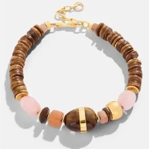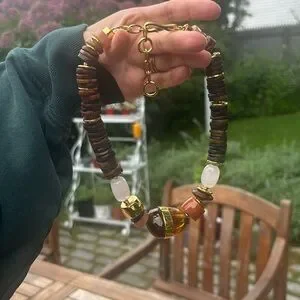 This elegant necklace features a stunning combination of gold and brown beads, perfect for adding a touch of sophistication to any outfit.