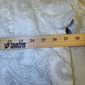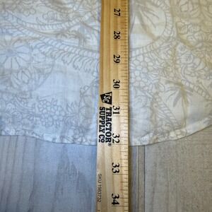 Tommy Bahama men's long sleeve shirt in size XXL. This light colored shirt features a subtle yet intricate palm leaf and paisley inspired print throughout. The classic button-down style with a chest pocket makes it a versatile addition to your wardrobe. Perfect for a casual beach day or a relaxed evening out.