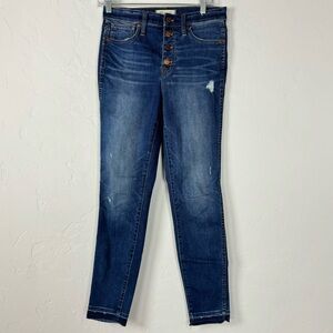 Madewell Jeans Denim 10" High Rise Skinny Drop Hem Rose Cliff Dark Blue Wash