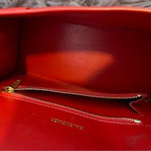 Authentic Balenciaga Handbag is fairly new. Red leather with gold B. Serial numbers in photos