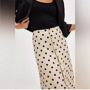 NWT Free People Black and Cream Polka Dot Midi Skirt