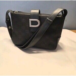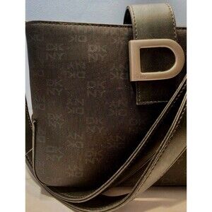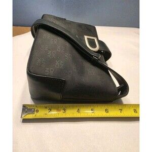 The DKNY Black Fabric Faux Leather Buckle Logo Design Shoulder Bag is a stylish and versatile accessory for women. With a rectangular shape and medium size, this bag is perfect for everyday use, traveling, or business meetings. The black exterior color and silver hardware add a touch of sophistication, while the buckle logo design adds a unique flair. It features a zippered and snap closure, inner pockets, and an adjustable shoulder strap for added convenience. Made of faux leather and fabric, this bag offers a designer touch with its signature logo detail and silver tone metal hardware. Very good condition. Nonsmoking Seller. Ready for immediate shipment. Approx 7"t x 9"w x 3"d w 10-15" adj handle/ shoulder strap.
