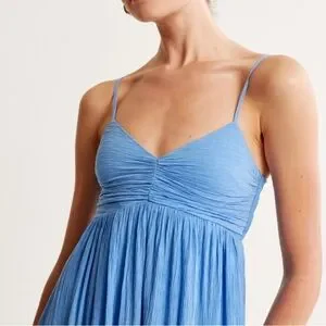 NWT Abercrombie Crinkle Textured Ruched Maxi Dress Medium Petite