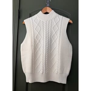 NWT Varley Joilette Roll Neck Cable Knit Sweater Layering Vest Egret Cream Small