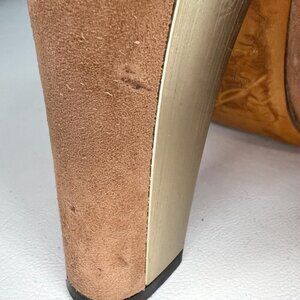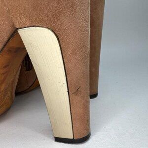 BRIAN ATWOOD Made in Italy 🇮🇹 Suede Booties Layered Fringe details Gold Heel Inside Zipper on Inner Side Size 8.5