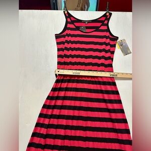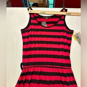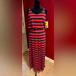 Fever Pink Ginger & Black Striped Maxi Dress Size Small Sleeveless Stretch NWT