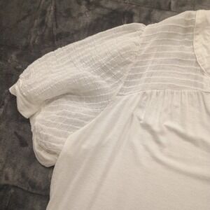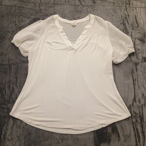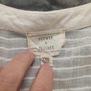 Flower & Feather Tunic Top Plus Size 2X White Sheer Sleeve V Neck