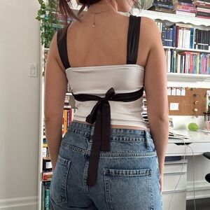 Stylish black and white top perfect for any occasion. Features a sleek design with comfortable straps. Ideal for pairing with jeans or skirts.