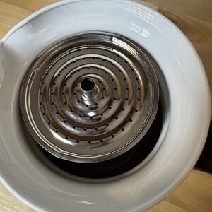 The Corning Ware Blue Cornflower P-166 6 Cup Stovetop Percolator with Lid & Basket is a vintage piece of decorative cookware that adds a touch of nostalgia to any kitchen. Made in Corning, New York by the renowned brand CorningWare, this percolator features a classic blue cornflower pattern and a glossy finish. With a capacity of 6 cups, this round-shaped percolator is an original piece that comes with a lid and percolator basket for convenience. Perfect for collectors or those looking to add a vintage touch to their cooking space, this stovetop percolator is a timeless and charming addition to any home.