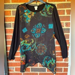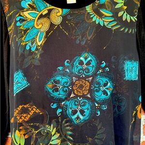 Vintage Black Chico’s women’s colorful Boho chiffon blouse sz 1 sm 8 whimsigoth