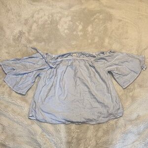 Elevate your style with this chic light blue open-shoulder top. Perfect for casual outings or a day at the beach.