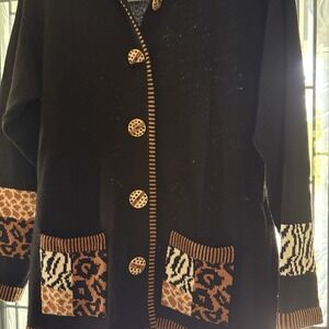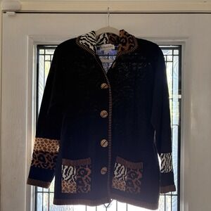 Richard & Levy Women's Size Large Santana Knit Cardigan Jacket Animal Print Trim