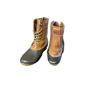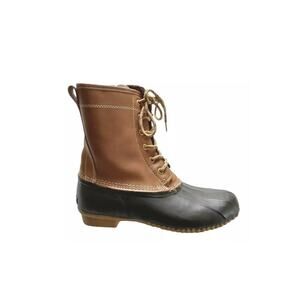 Khombu Letty winter Brown Waterproof Mid Calf Boot Leather Lined Lace Up Duck Boots Size 8 M Snow Rain.