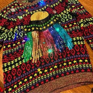 Blizzard Bay Christmas Sweater UFO Candy Abduction Size L Light Up Festive Rave
