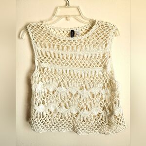 Elevate your style with this chic crochet sleeveless top. Perfect for layering or wearing on its own, this cream top adds a touch of elegance to any outfit.