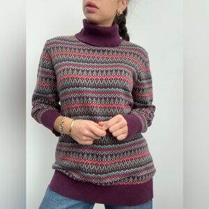 Vintage LL Bean Cotton Cashmere Fair Isle Knit Turtleneck Sweater Size L