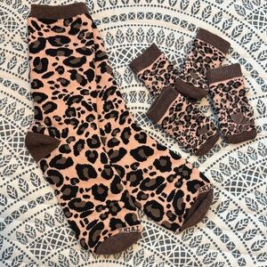 Stylish leopard print socks set for women and your pup. Features a bold pink and brown design. Perfect for adding a touch of wild flair to any outfit.