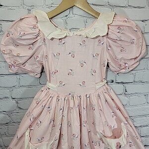 VINTAGE DAISY KINGDOM Girls Dress Size 8 Pink Floral Tea Party Factory Made Flaw